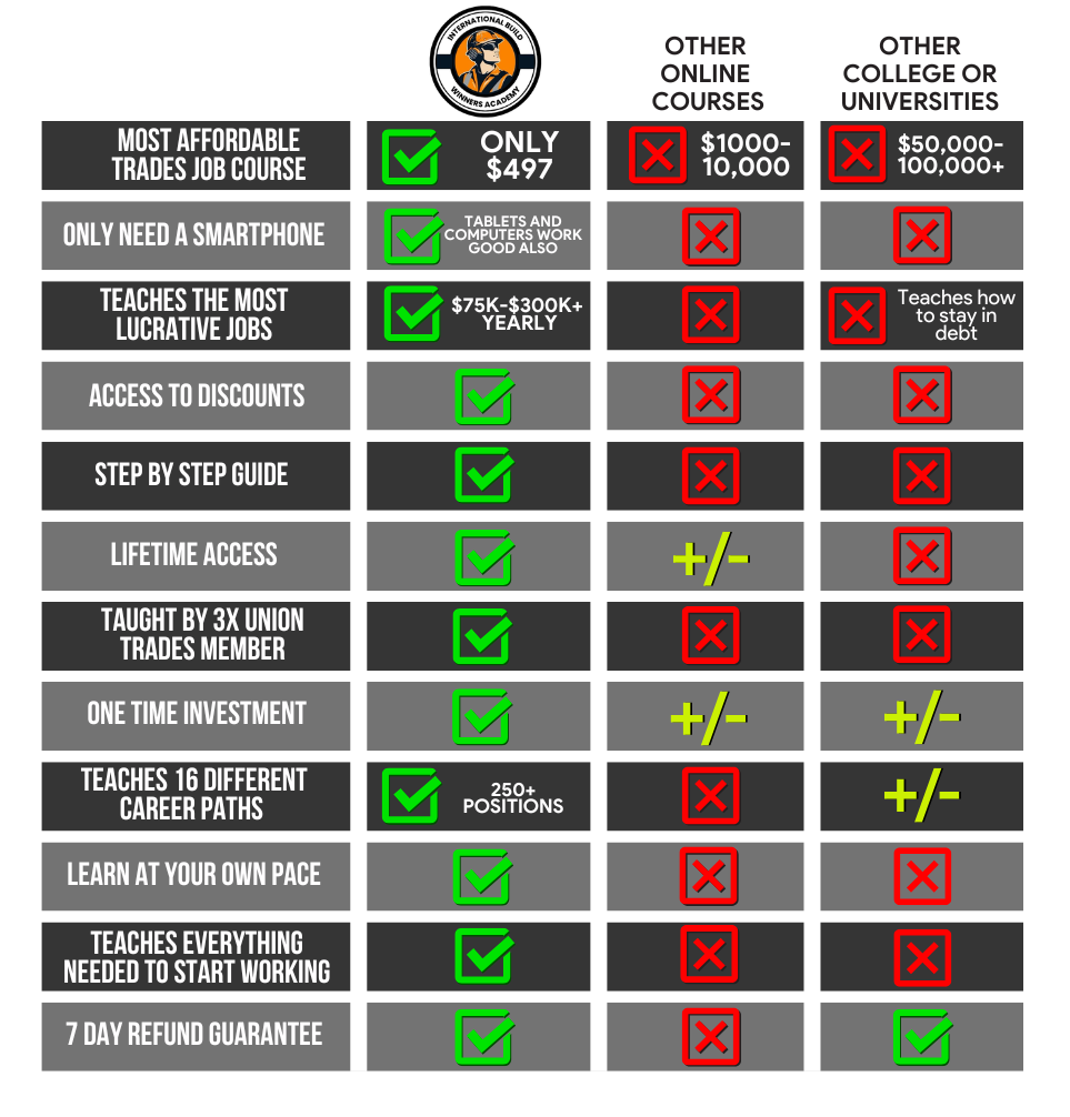Pick a WINNER: Pick the right union career from the start and don't waste your time! There is literally no excuse to not land a high paying trades job of your dreams after completing the Academy with all the positions offered and how to get them.